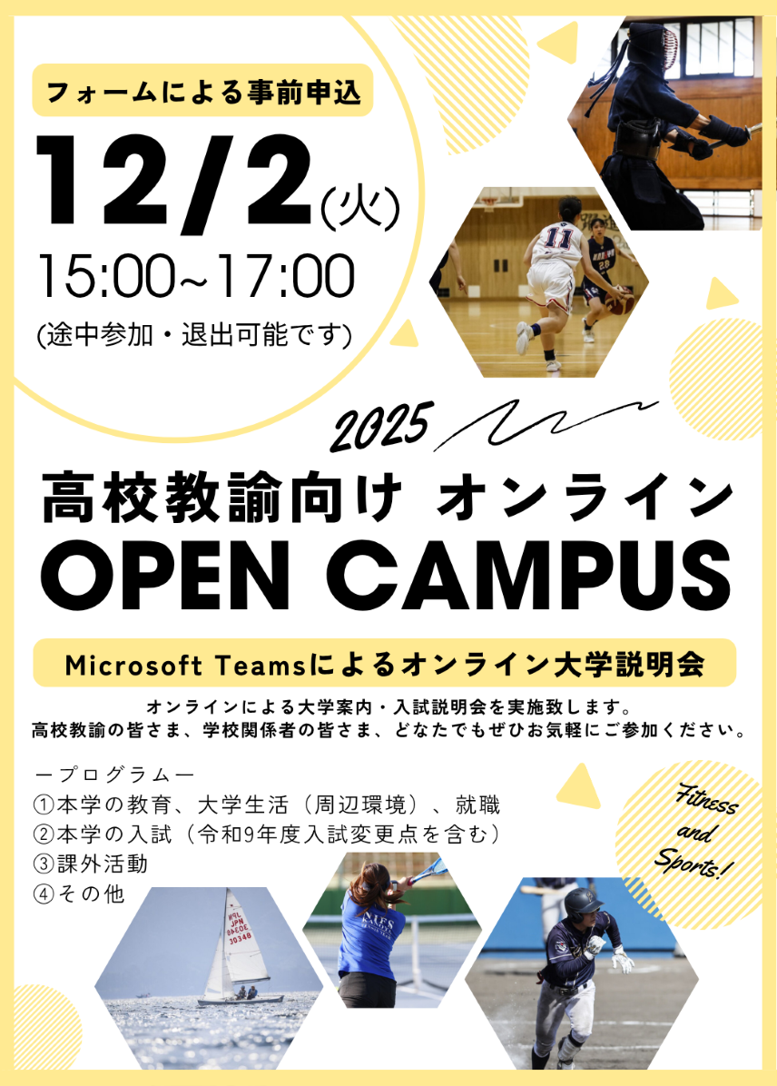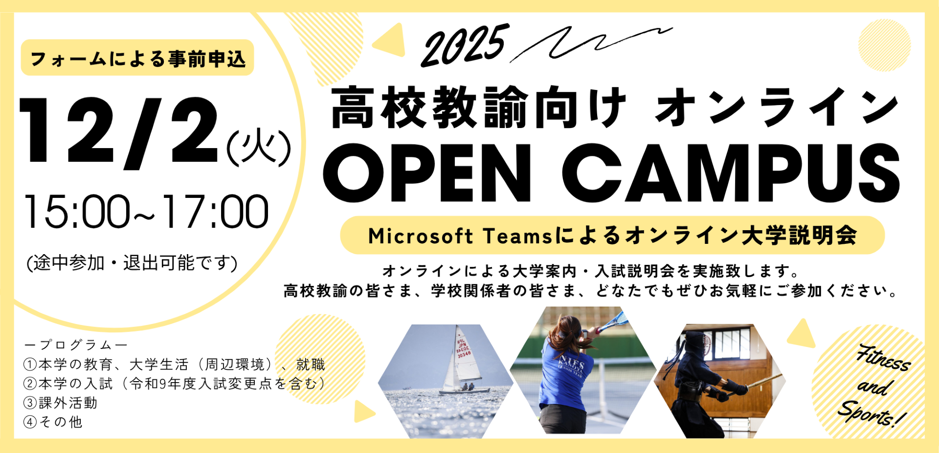 - NEWオープンキャンパス(オンライン・高校教諭対象)の申込受付中!