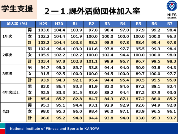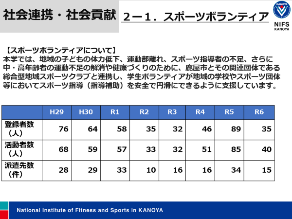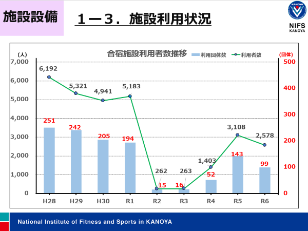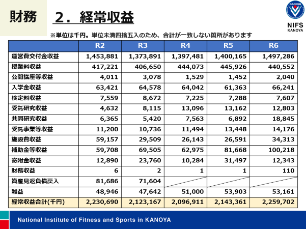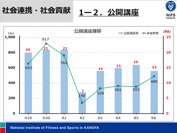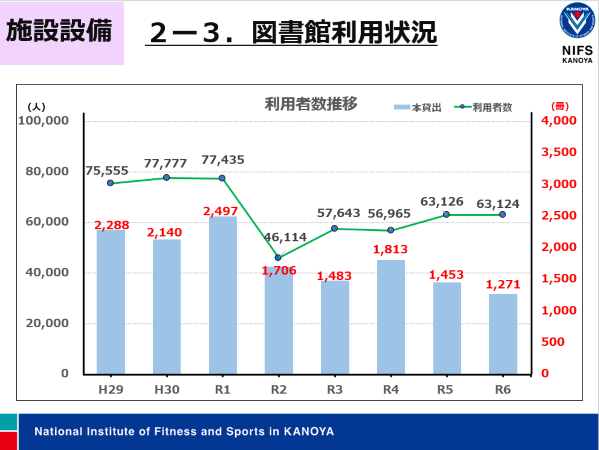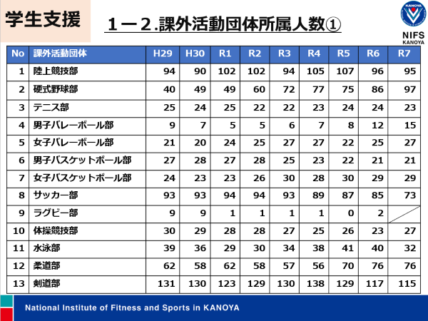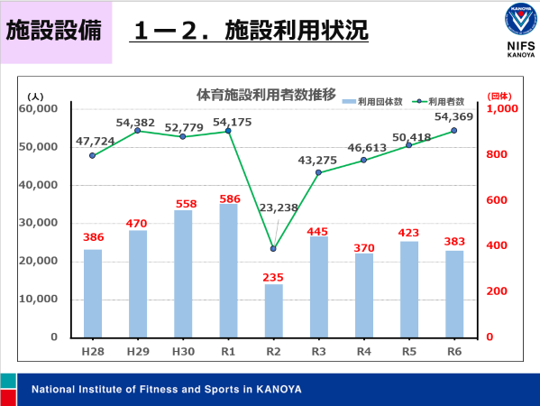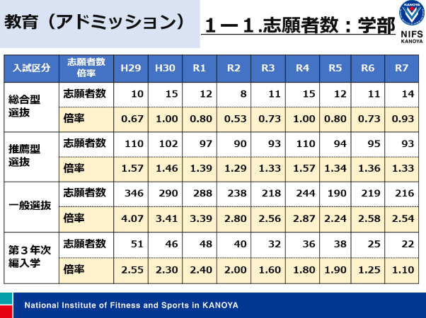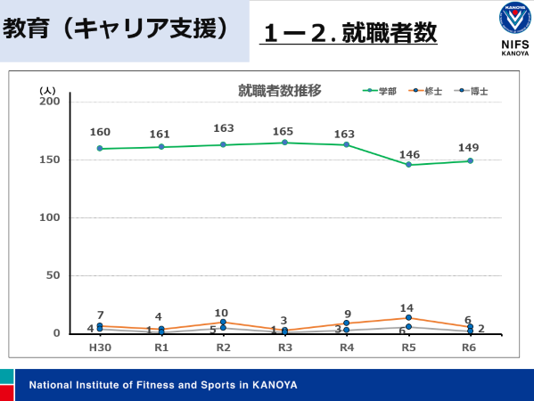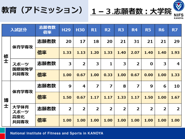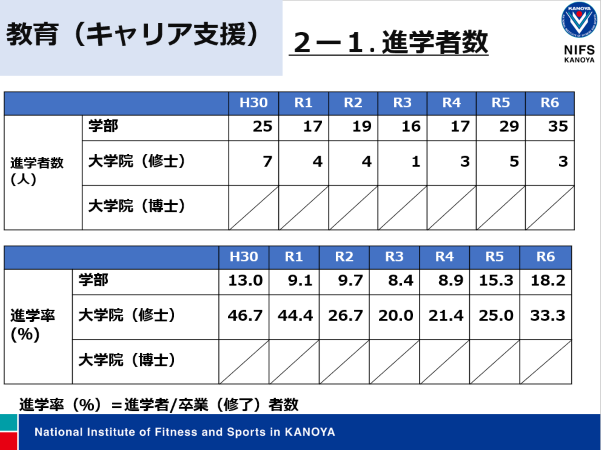 鹿屋体育大学 Fact Book【学外版】は、鹿屋体育大学 IR 室にて作成しているもので、本学における教育・研究等に関する基礎的なデータを取りまとめ、経年での推移を可視化したデータ集になります。