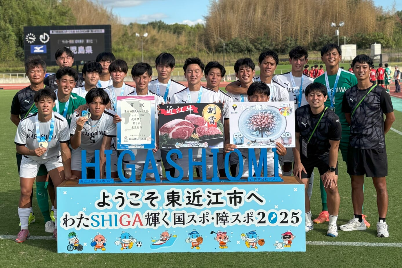 令和7年10月4日〜7日に開催された第79回国民スポーツ大会(サッカー競技・成年男子)で、鹿児島県代表として出場した本学サッカー部が優勝しました!