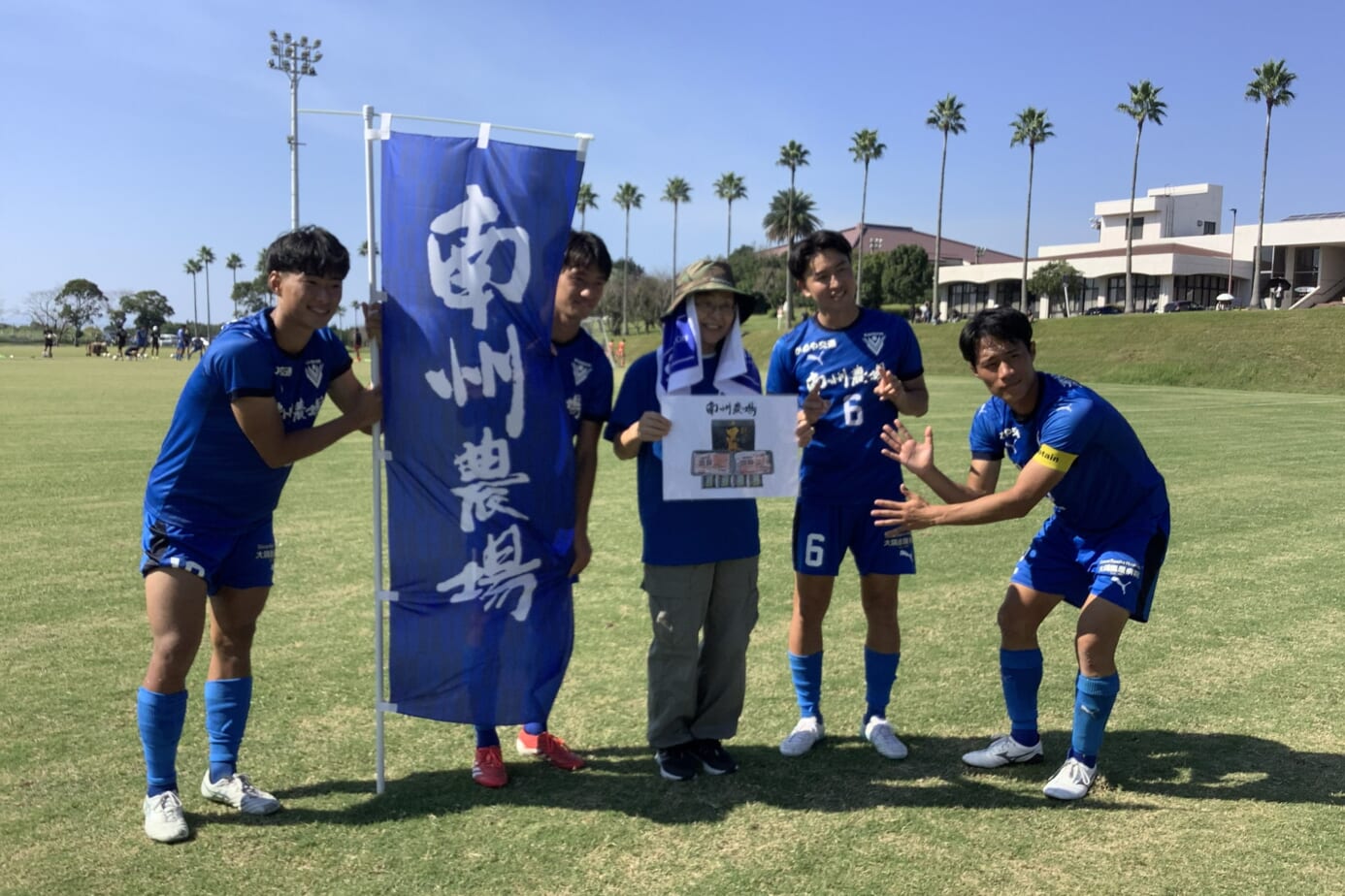 先日閉幕した第79回国民スポーツ大会(滋賀国スポ)のサッカー成年男子で、14年ぶり2度目の優勝を飾った本学サッカー部。イベント終了後に、主将の戸田さんが「たくさんの方が応援に来てくださっている中で、勝たなきゃいけない試合だと思っていました。自分にとっては今回が鹿屋体育大学のグラウンドでやる最後の公式戦でしたので、勝つことができてよかったです」と話してくれました。