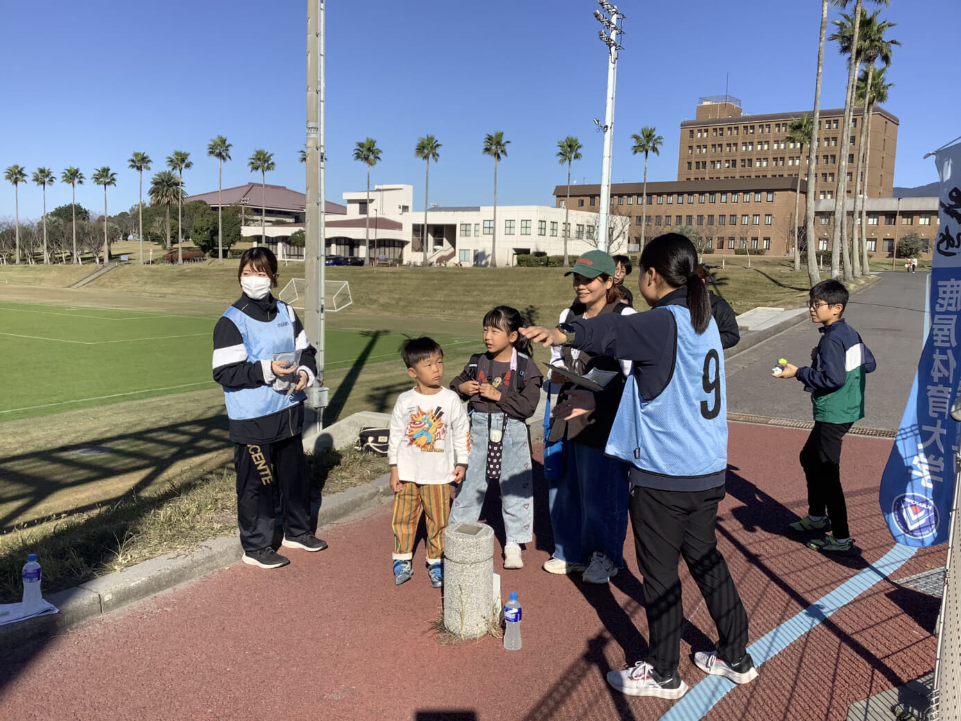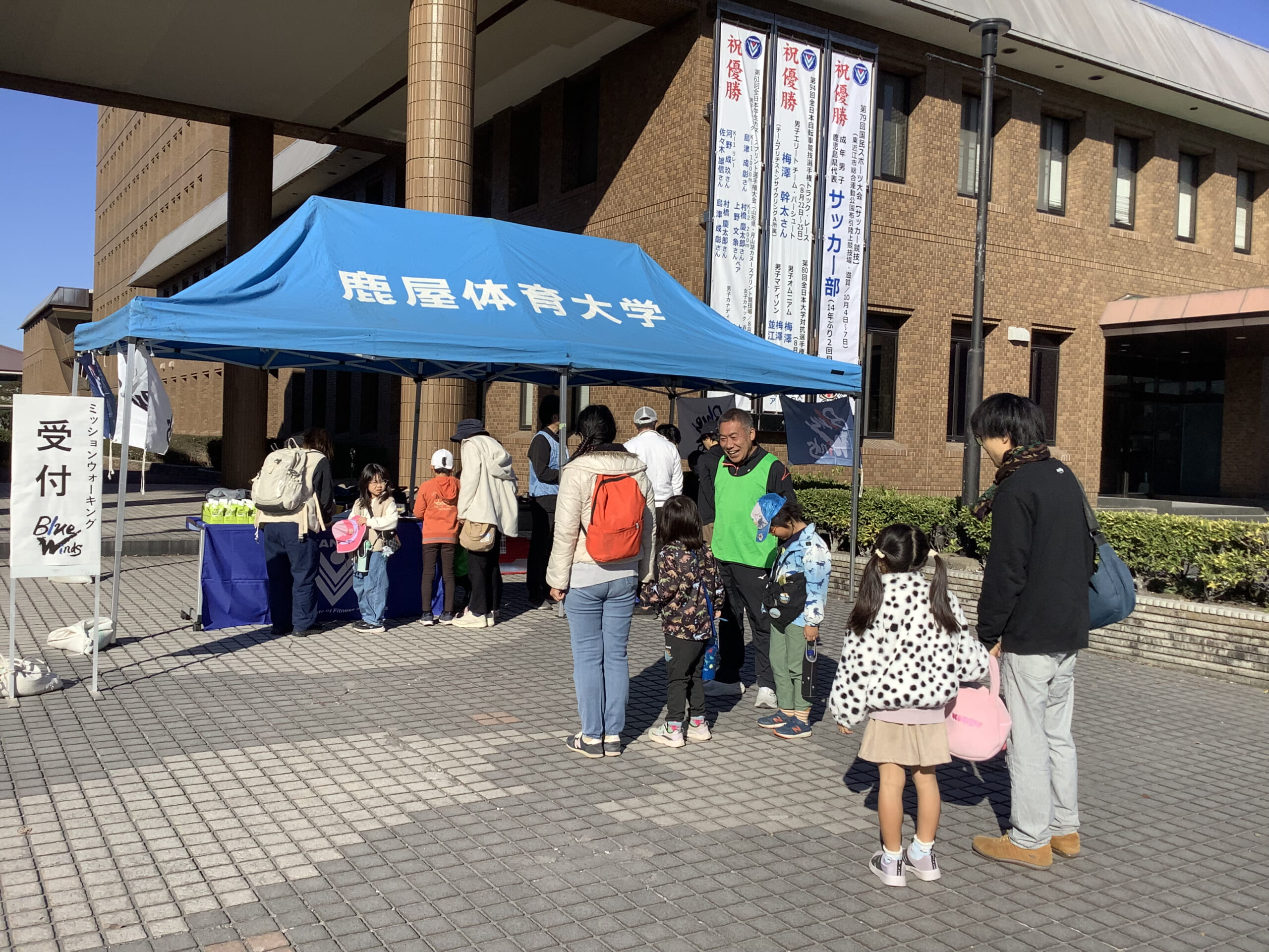 晴天に恵まれた令和7年11月22日(土)、鹿屋体育大学キャンパス内で『多世代交流ミッションウォーク in NIFS』(主催:鹿屋体育大学スポーツアライアンス室、協力:鹿屋体育大学スポーツイノベーション推進機構ヘルス・スポーツプロモーション部門、後援:鹿屋市、協賛:大塚製薬株式会社、コカ・コーラボトラーズジャパン株式会社)が行われ、35グループ119人が参加しました。今回のイベントはウォーキングの価値を高め、市民のスポーツ実施率を向上させることと、本学内のウォーキングコースや施設を利用できることの周知を図ることを目的に開催しました。