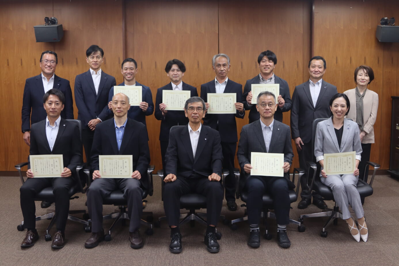 役員列席のもとに行われた表彰式では、金久学長から一人一人に表彰状が手渡されました。学長からは、「皆さんの日々の教育・指導の積み重ねが今回の受賞につながった。今後も本学の教育や競技力の向上のために尽力してほしい」との挨拶がありました。