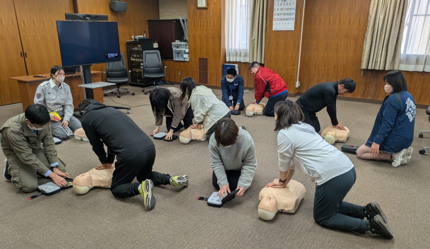 講師には大隅肝属地区消防組合中央消防署の救急隊員の方をお迎えし、現場経験に基づく丁寧な指導をいただきました。参加者からは、「人工呼吸の実施判断」や「負傷によって胸骨圧迫を実施できない際の対応」など、実践的な質問も寄せられ、理解を深める機会となりました。 今後も、安心・安全な環境づくりの一環として、年に2回の定期的な開催を予定しています。