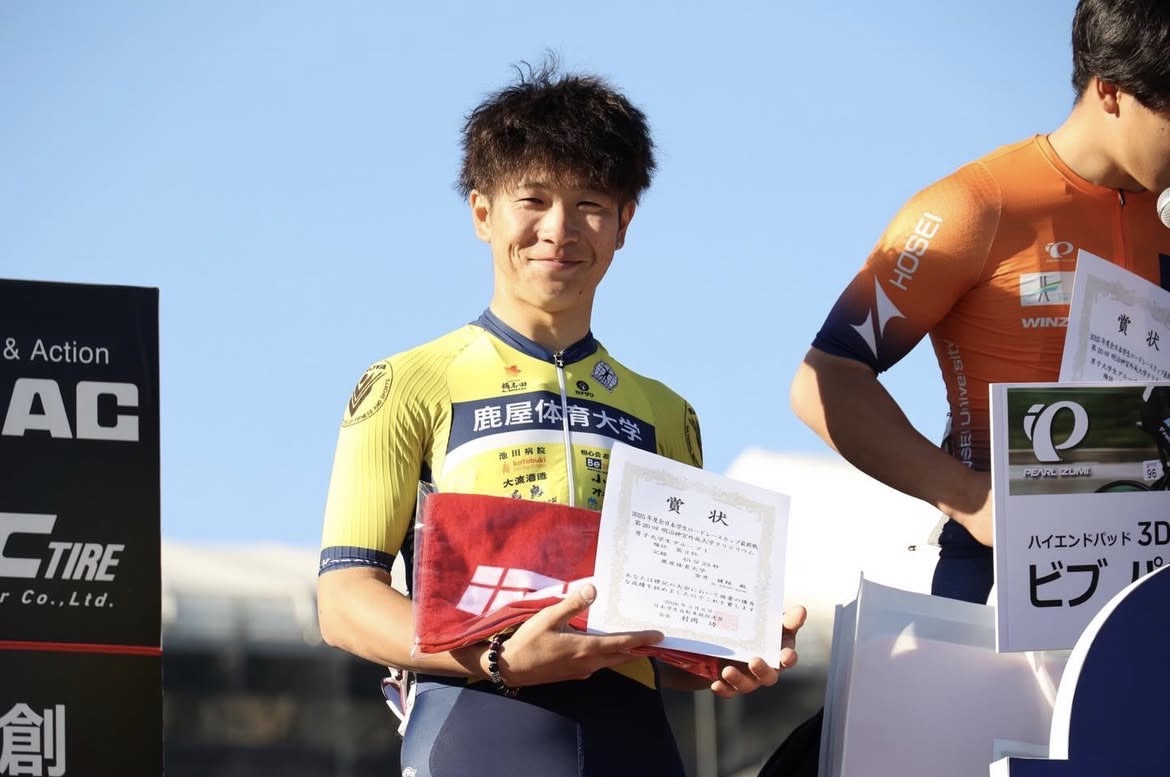 | 全日本学生RCS最終戦・明治神宮外苑クリテリウムで優勝することができ、とてもうれしく思います。最後は畑とワンツーという最高の形で決めることができ、ここまで共に頑張ってきた成果を出せました。チームメイトのサポートや応援があったからこその勝利です。 この経験を自信に変えて、さらに上を目指して挑戦し続けます。ありがとうございました。 |