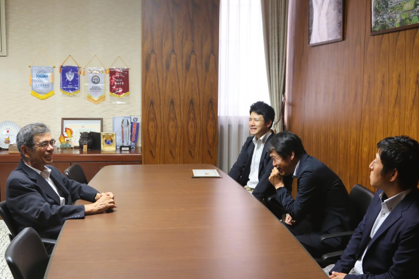 令和7年10月1日に、大澤特任助教と高橋教授、村上講師が学長を訪問し、受賞報告を行いました。金久学長から「大澤先生が取り組んでいることはすごく大事なことなので、自信を持ってしっかりと良いものをつくってください」と今後の活躍へ期待を込めた激励の言葉があり、研究内容に関する懇談は終始和やかな雰囲気で行われました。
