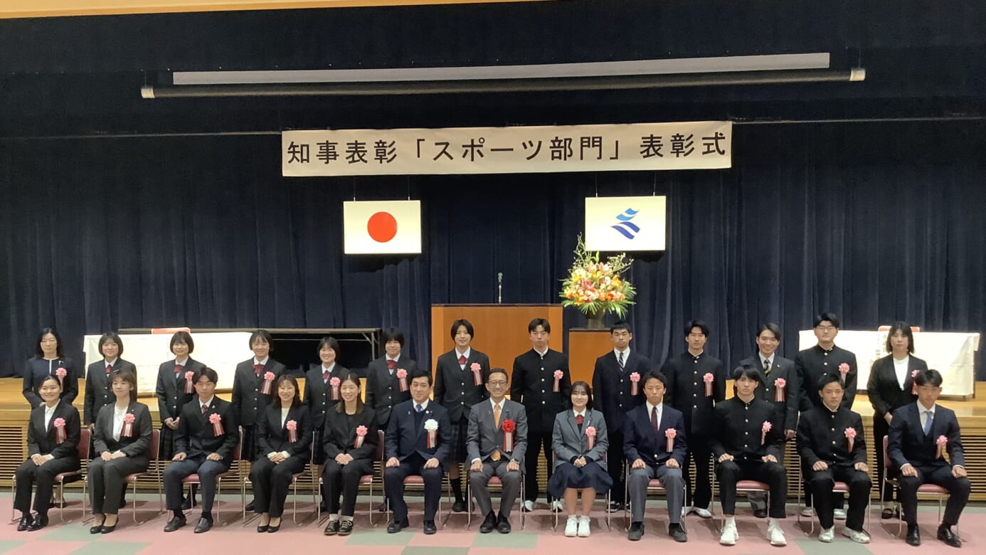 令和7年度知事表彰「スポーツ部門」の表彰式が、2月9日に鹿児島県庁で行われました。鹿児島県では国際大会及び全国大会等で顕著な成績を収め、県のスポーツ振興に貢献した選手、団体を毎年表彰しています。今年度は第79回国民スポーツ大会等で優秀な成績を収めた6個人、6団体が選ばれ、夏季デフリンピック競技大会で上位入賞した3人には特別賞が贈られました。