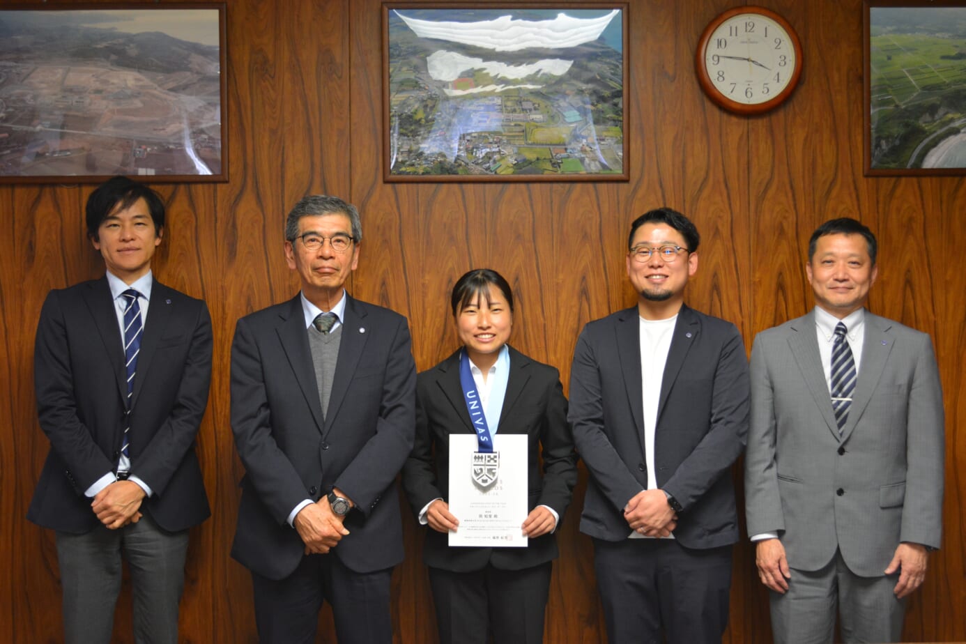 また、今回の受賞を報告するため、3月5日(木)には岡さんらによる学長表敬が行われました。