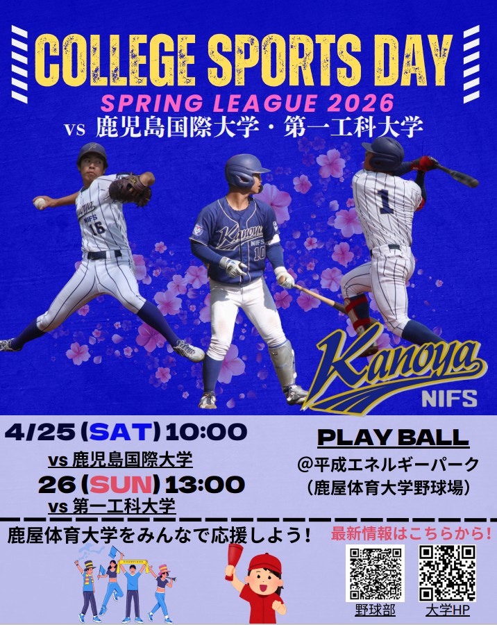 【4/25・26】Blue Winds presents.2026カレッジスポーツデイを開催します!(硬式野球):第3回南部九州大学野球選手権大会鹿児島地区予選